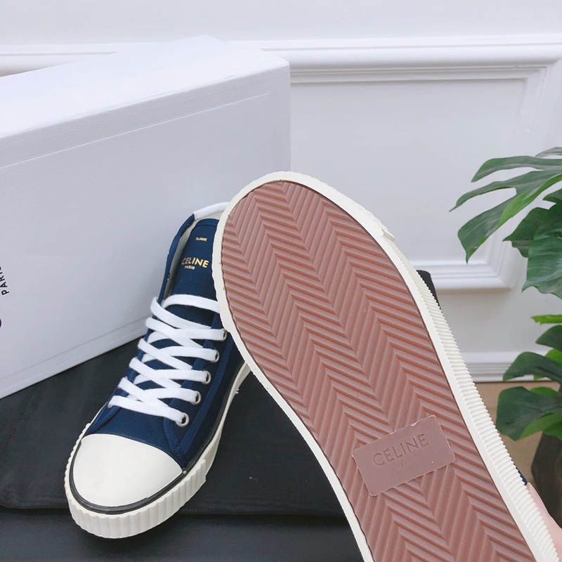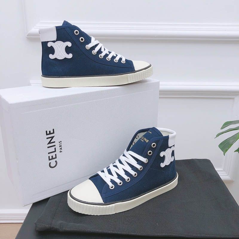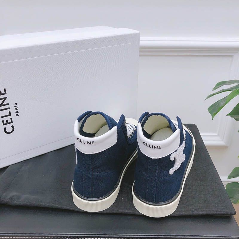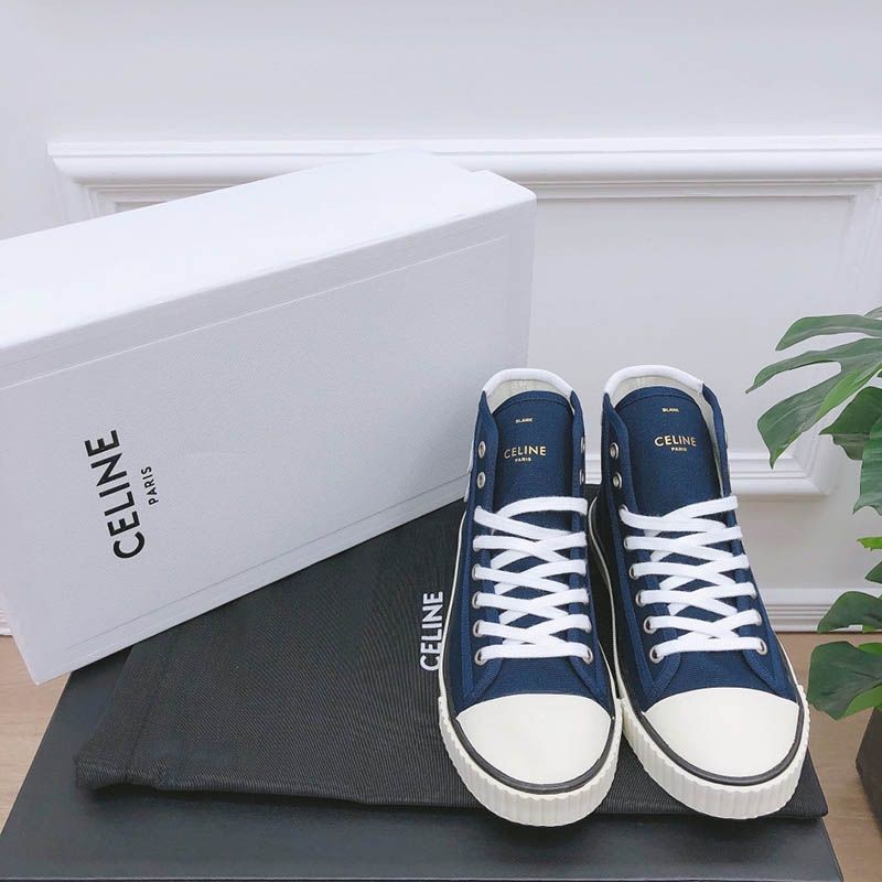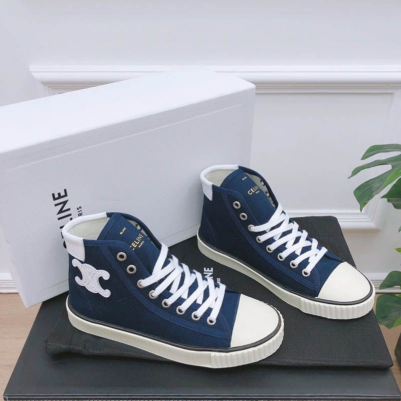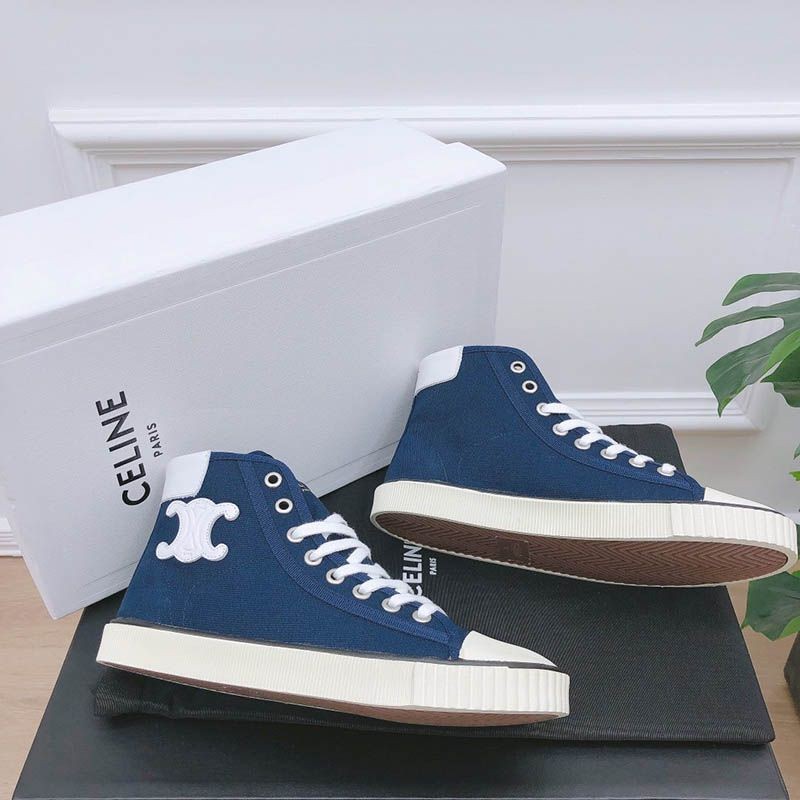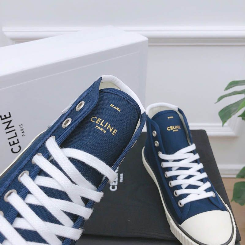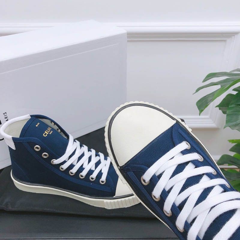 トゥキャップ付き セリーヌ ブランク レースアップ ミドルスニーカー / キャンバス&カーフスキン