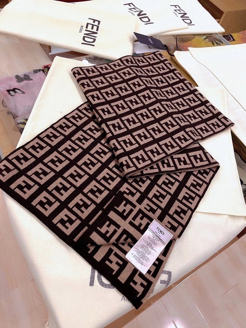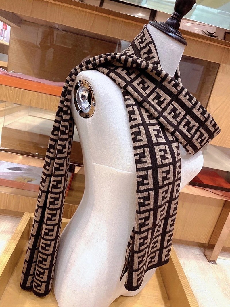 フェンディ マフラー コピー スカーフ ウール インターシャ タッセル