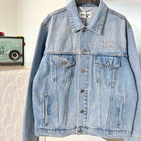 ミュウミュウ ロゴ クロップド デニムジャケット 偽物